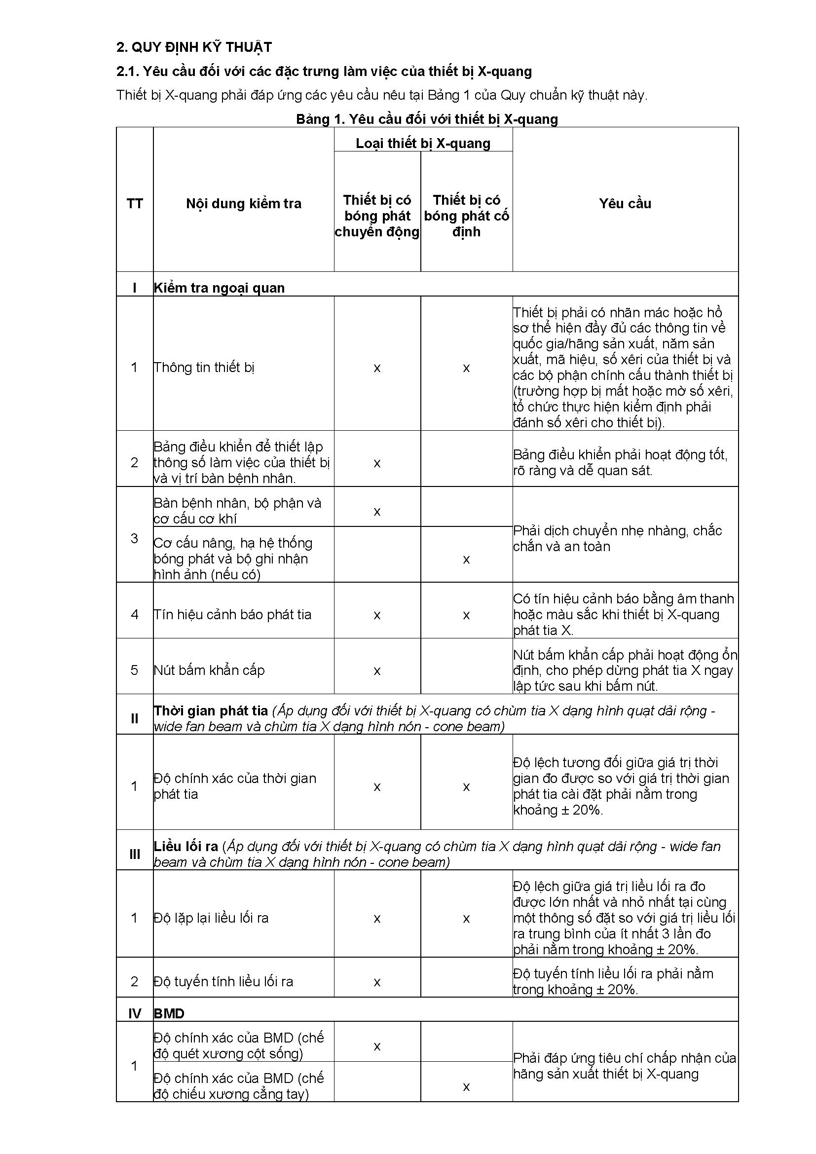 Quy chuẩn kỹ thuật này quy định các yêu cầu kỹ thuật, yêu cầu quản lý đối với hoạt động kiểm định và quy trình kiểm định đối với thiết bị X-quang đo mật độ xương dùng trong y tế (sau đây gọi tắt là thiết bị X-quang).