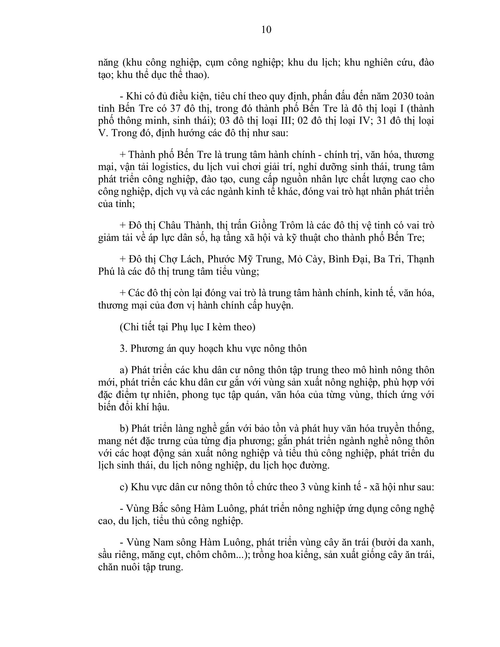 - Tỉnh Bến Tre thành trung tâm thương mại cấp vùng, trung tâm giao thương kinh tế của vùng đồng bằng sông Cửu Long.