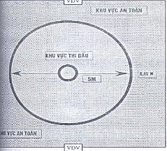 1.1. Sân thi đấu đẩy gậy hình tròn đường kính là 5m, vạch giới hạn rộng 0,05m và nằm trong phạm vi của sân có màu trắng hoặc khác với màu nền sân.