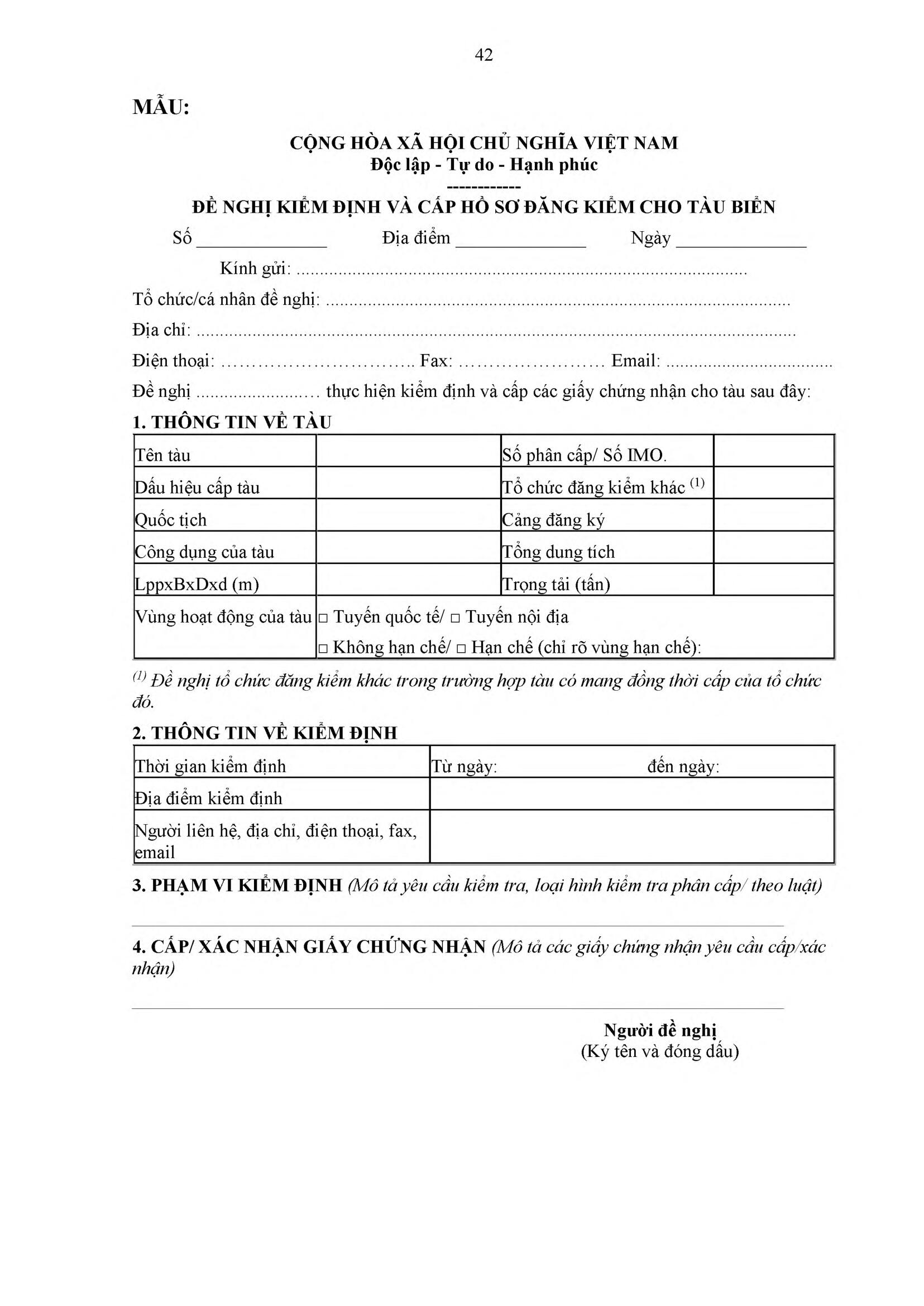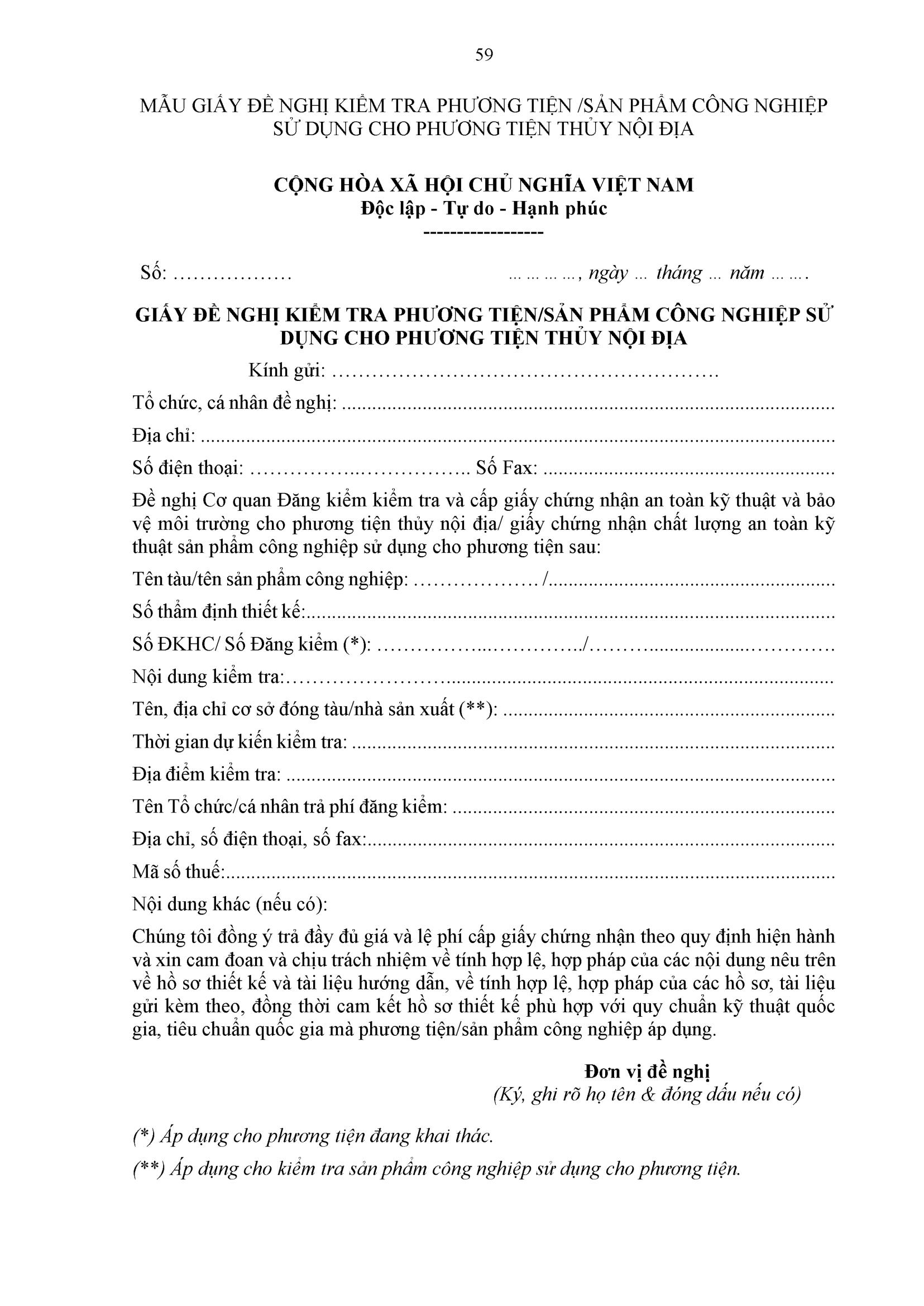 - Giấy đề nghị thẩm định mẫu định hình phương tiện thủy nội địa;