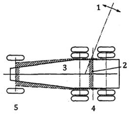 Trường hợp sử dụng chân chống, cạnh lật là đường nối các điểm tiếp xúc của các xy lanh chân chống (không thể hiện trên hình vẽ).