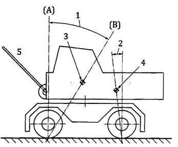 Hình B.2 - Góc lật khi cần vuông góc với chiều chuyển động (phía bên các bánh xe, 90°)