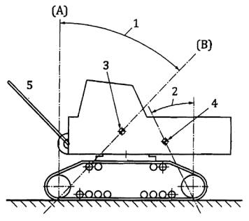 Hình B.5 - Góc lật khi cần vuông góc với chiều chuyển động (cần phía bên), con lăn đỡ xích theo kiểu thiết kế A