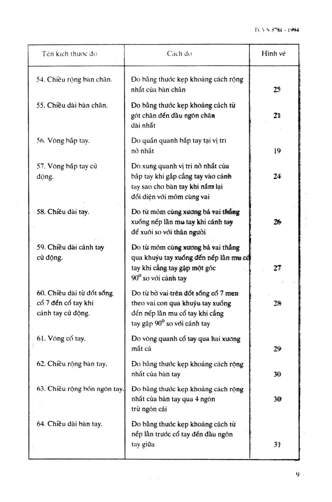 Tiêu chuẩn Việt Nam TCVN 5781:1994 về Phương pháp đo cơ thể người